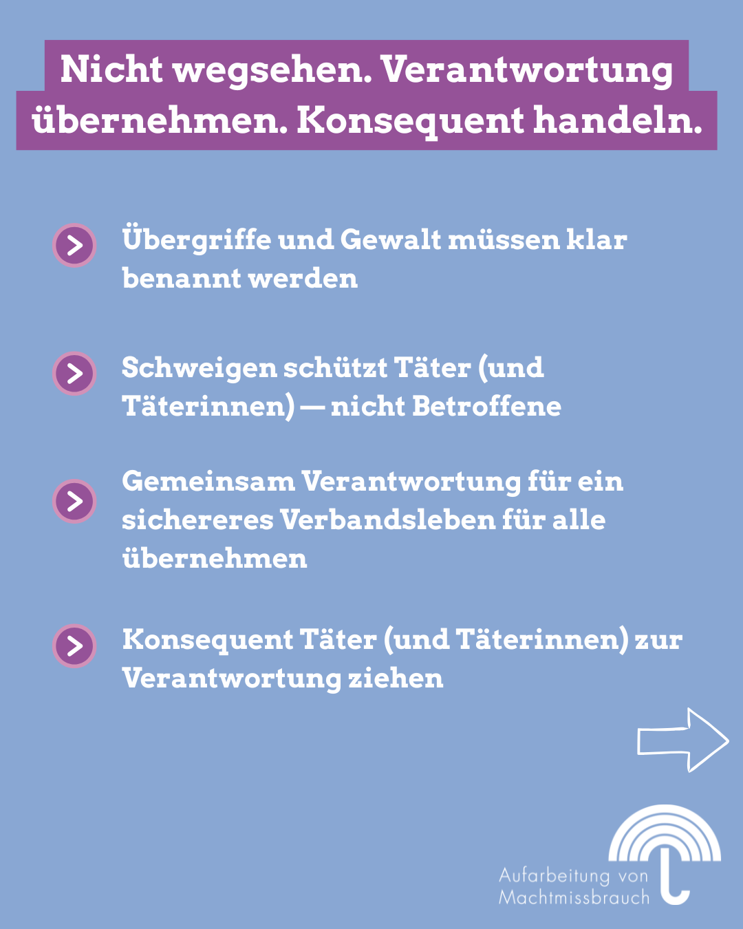Für die Einleitung des Interventionsverfahrens ist es nicht relevant, ob ein Vorfall strafrechtlich relevant ist. Nicht alle Formen von Übergriffen, Grenzverletzungen und Machtmissbräuchen sind strafbar. Aber keine dieser Formen ist in unserem Verband erwünscht.