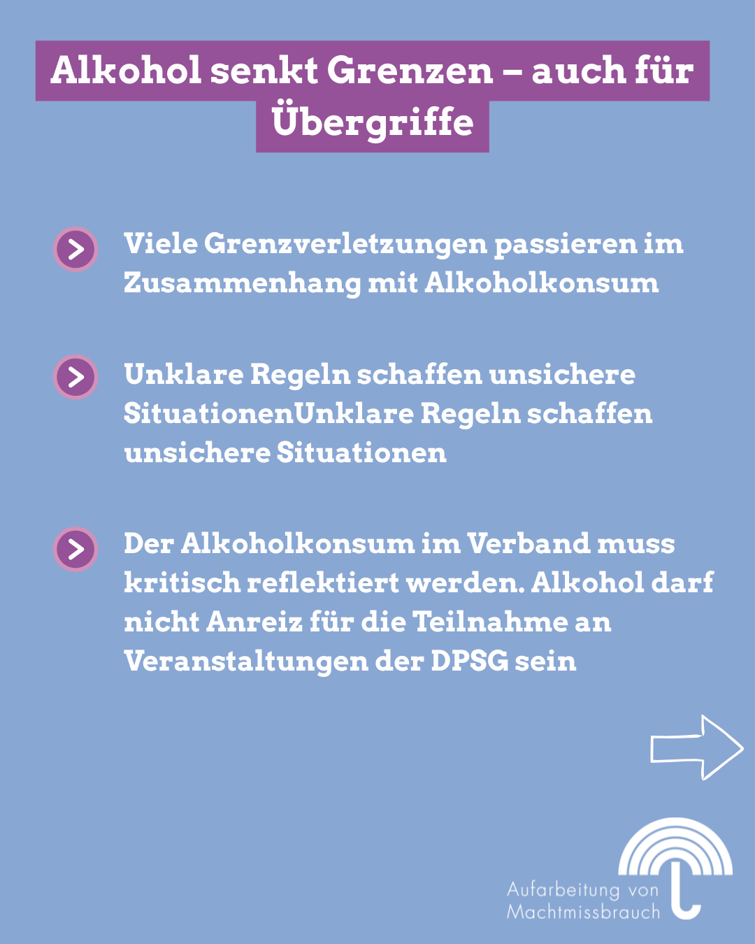 Eine andere Möglichkeit ist der (temporäre) Ausschluss von Beschuldigten aus der Leitungsrunde oder Gruppenstunde. In schwerwiegenden Fällen kommt auch ein Verbandsausschlussverfahren in Frage. Es stellt sicher, dass die beschuldigte Person nie wieder Mitglied der DPSG wird. Das bedeutet, dass sie weder in einen anderen Stamm wechseln oder zu einem späteren Zeitpunkt wieder in den Verband eintreten kann.